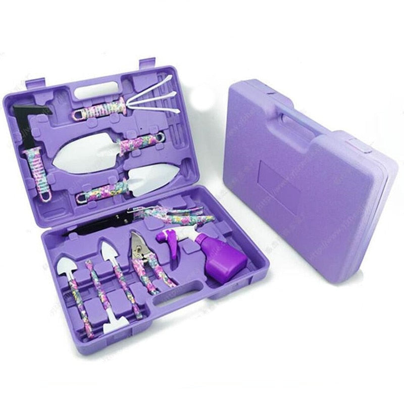 Purple 10pcs/Set Garden Tool Set Fruit Tree Pruning Shears Grafting Tool/gardening tools/shovel/garden hoe/garden tiller